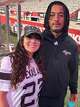 Texas A&M linebacker Daymion Sanford posing for a photo alongside his mom, Natasha Sanford at Donald W. Reynolds Razorback Stadiυm in Fayetteville, Ark.