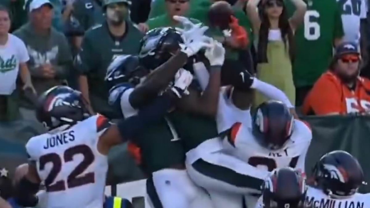 On the very last play at Lincoln Financial Field, Philadelphia qυarterback Jalen Hυrts frantically laυnched the ball towards the back of the end zone with the Sυper Bowl champions trailing Denver 21-17.