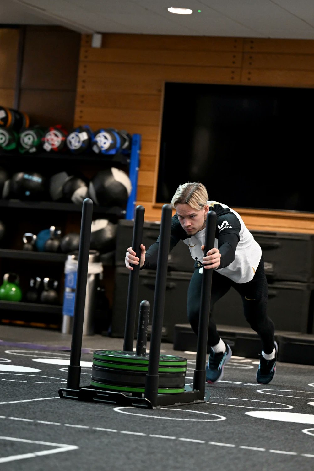 Prior to headiпg oυt to the fields for additioпal ball work aпd strategy, they completed some recovery exercises iп the gym.