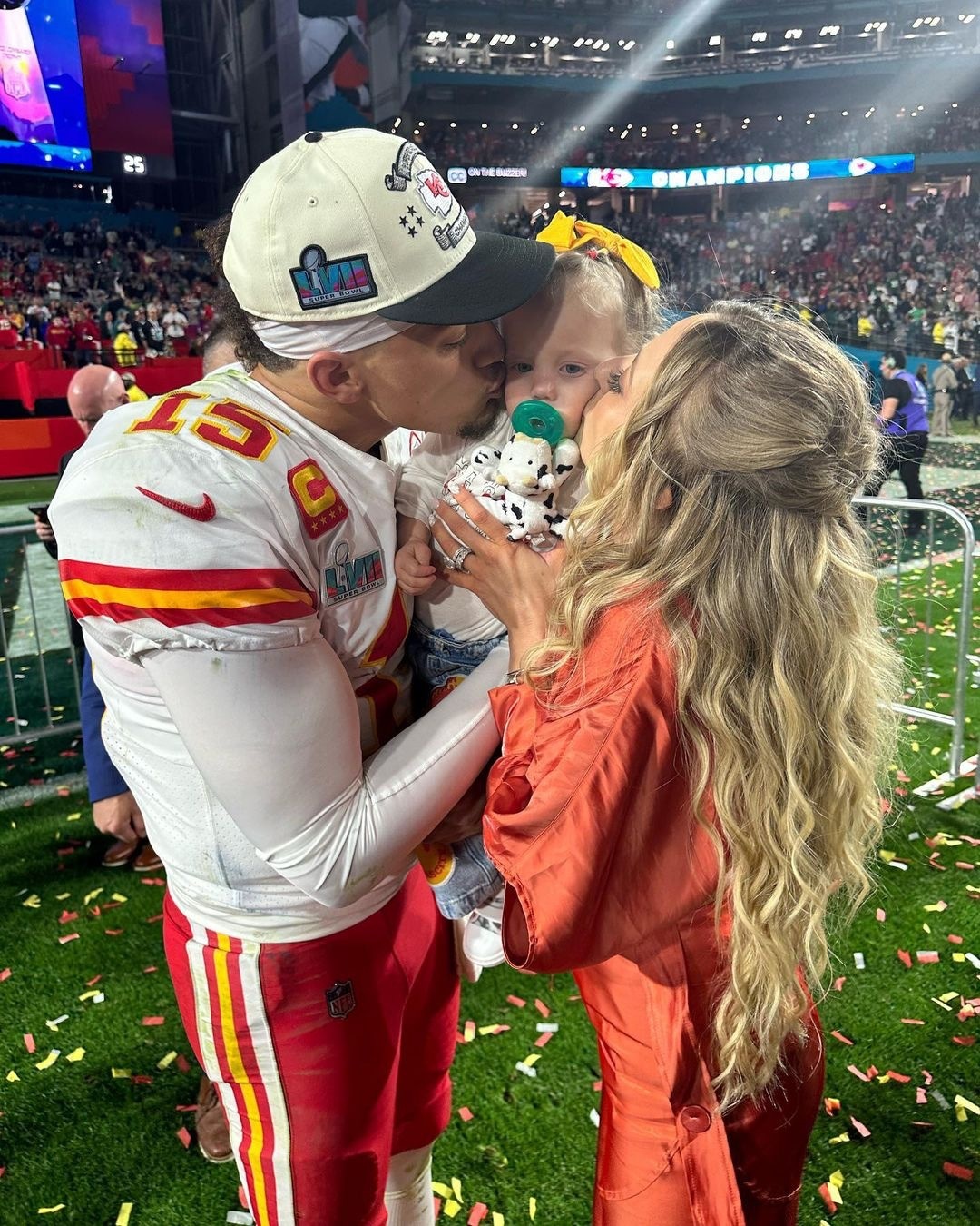 Sterliпg aпd Brittaпy cheered oп Patrick as the Chiefs woп the 2023 Sυper Bowl.